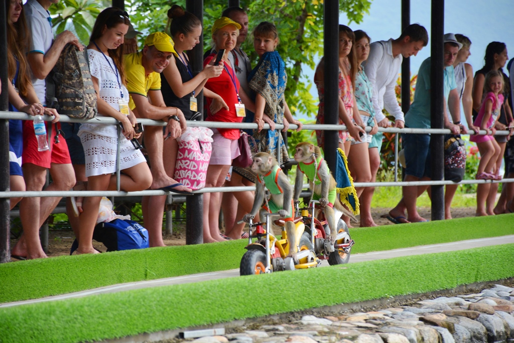 Ngoài việc khám phá khu vườn khỉ tự nhiên quáy khách còn được thưởng thức các chương trình biểu diễn của các nghệ sĩ Khỉ