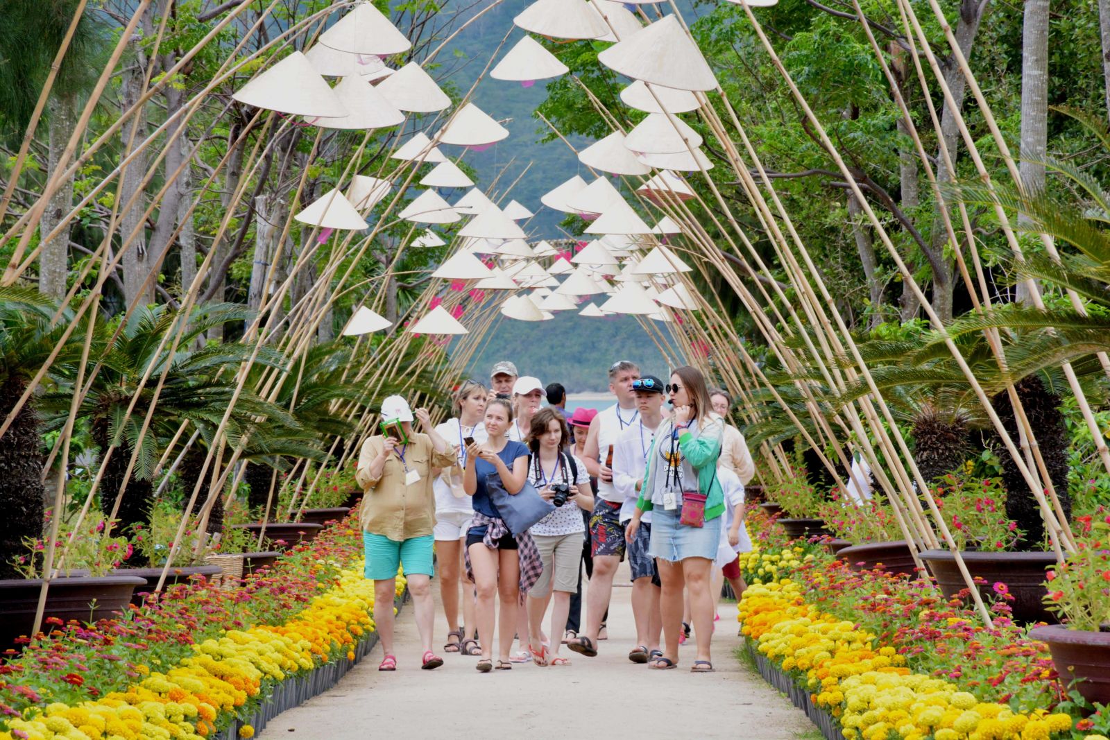 Với những chiếc nón lá được treo trên những cành trúc được bố trí dọc hai bên đường tạo nên một khung cảnh chỉ có tại suối hoa Lan Nha Trang, nếu ban đêm Hội An có con đường đèn lồng thì ban ngày nơi đây có con đường nón lá. Rất nhiều bạn trẻ tỏ ra thích thú khi đến đây, mọi người đều không quên tạo cho mình những khoảnh khắc riêng cùng bạn bè và người thân..