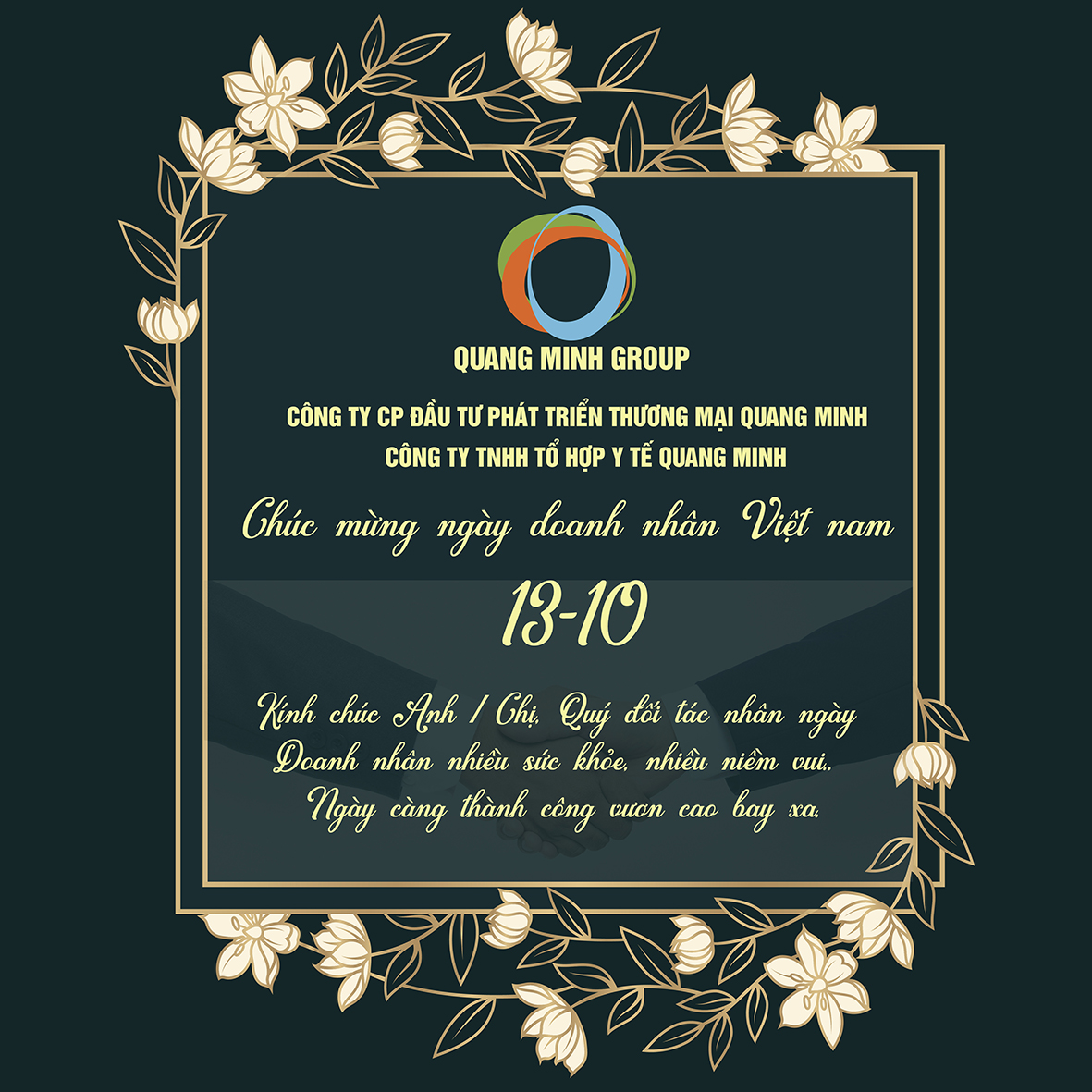 ân dịp ngày doanh nhân Việt nam 13 - 10 - 2022, Quang Minh Group kính chúc Quý đối tác, Anh/ chị có một ngày Doanh nhân nhiều sức khỏe, nhiều niềm vui. Vững tay lái để chèo lái con thuyền doanh nghiệp của mình vững vàng tiến liên phía trước.